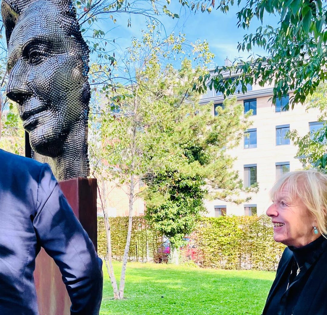 To Milenáris Park, Friday morning, for the unveiling of the Margaret Thatcher memorial. Sir Mark and Lady Carol, Mrs T's twins, were both in attendance, as was Gergey Gulyás, minister in the PM's office. All the speeches were brisk and piercing, Bill Cash best of all; the ceremony concluded with Land of Hope & Glory, and much was made of her fondness for Jószef Antall, and the 1984 visit to the Great Market Hall. Carol, fashion-forward in a leather ra-ra skirt, black trainers, Gucci glasses, was quite moved as she posed for photos after:"I think it's fabulous... whoever put this whole morning together, well they deserve a pay rise."
